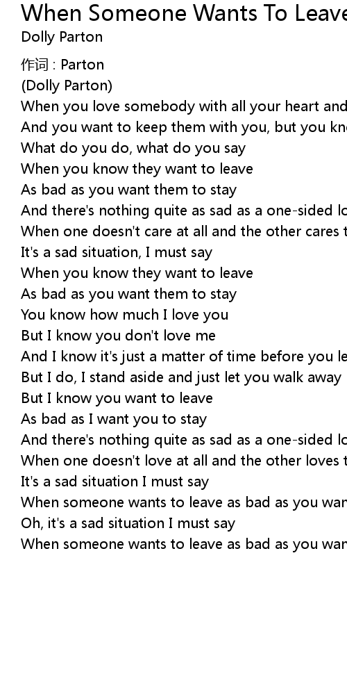 | Song | When Someone Wants To Leave |