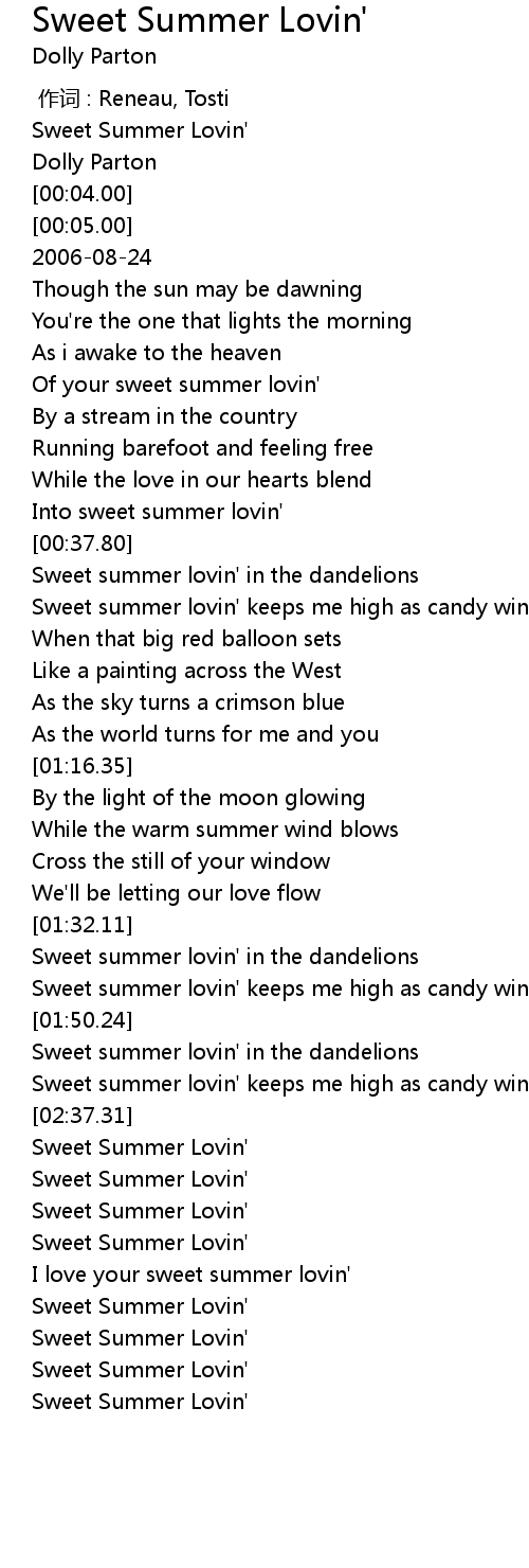 | [01:41.51] | Sweet summer lovin' keeps me high as candy wine |