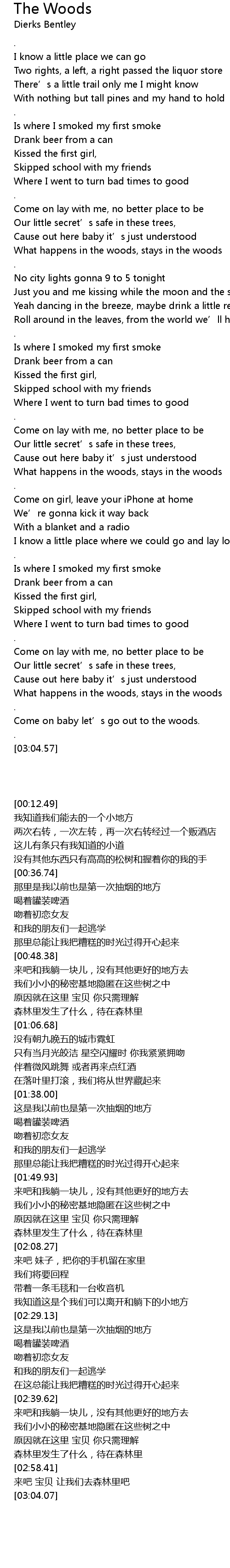 | [02:53.20] | What happens in the woods, stays in the woods |