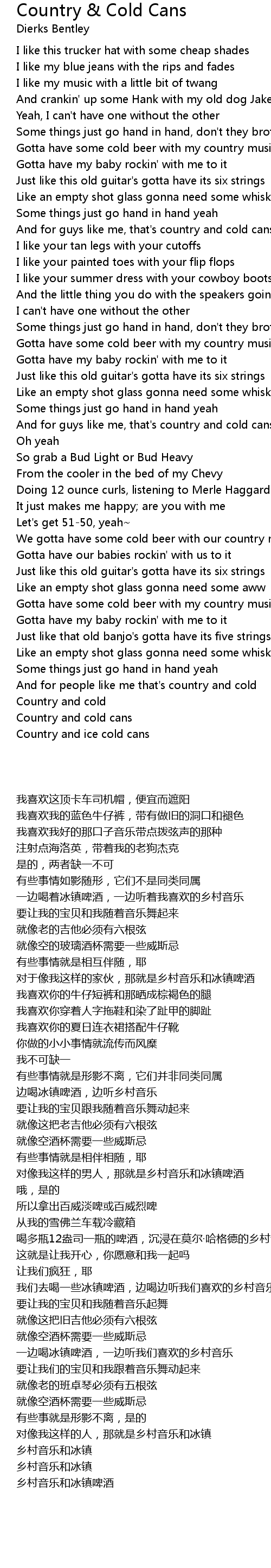 Gotta have some cold beer with my country music |