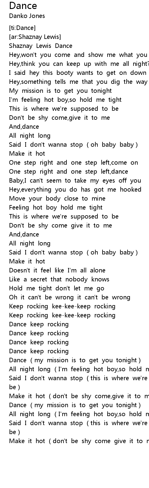 | [02:54.382] | Dance my mission is to get you tonight |