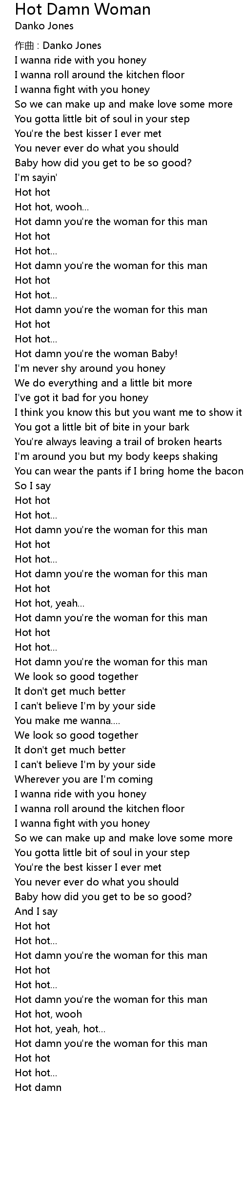 | Song | Hot Damn Woman |