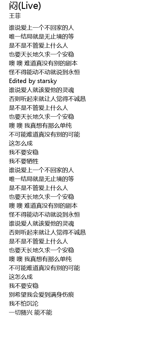 | [01:33.600] | 我不要安稳 |