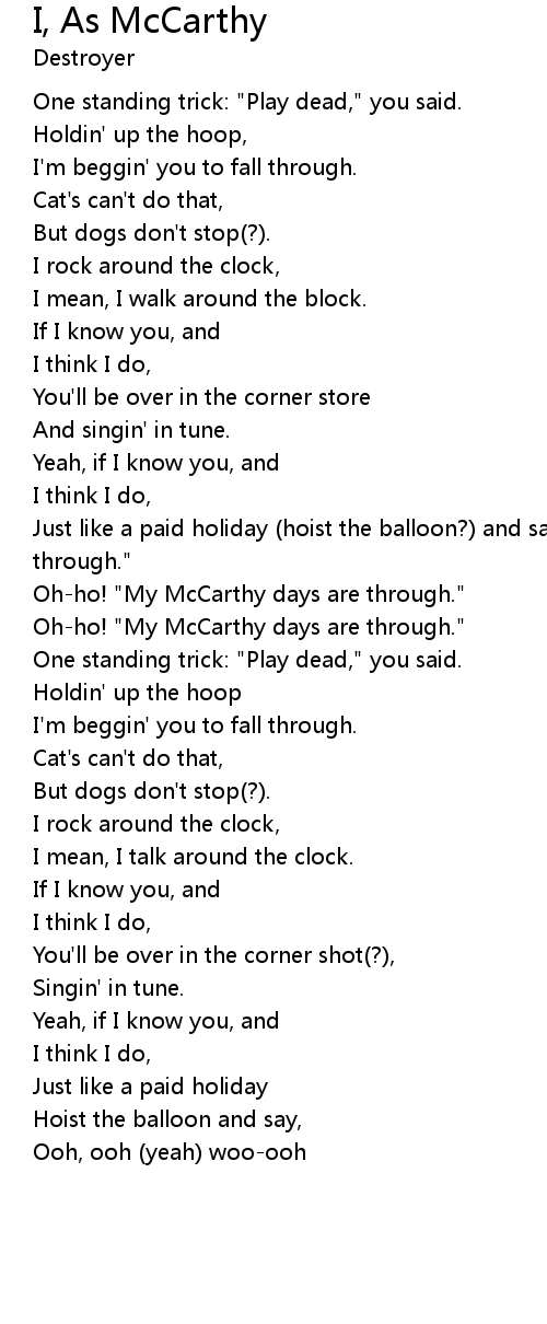 Just like a paid holiday (hoist the balloon?) and say, "My McCarthy days are through." |