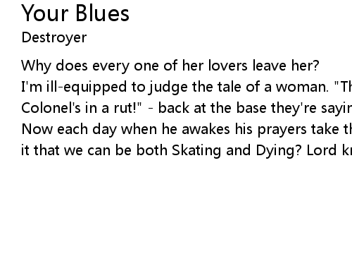 | I'm ill-equipped to judge the tale of a woman. "That inviting army slut!... The Colonel's in a rut!" - back at the base they're saying - | |