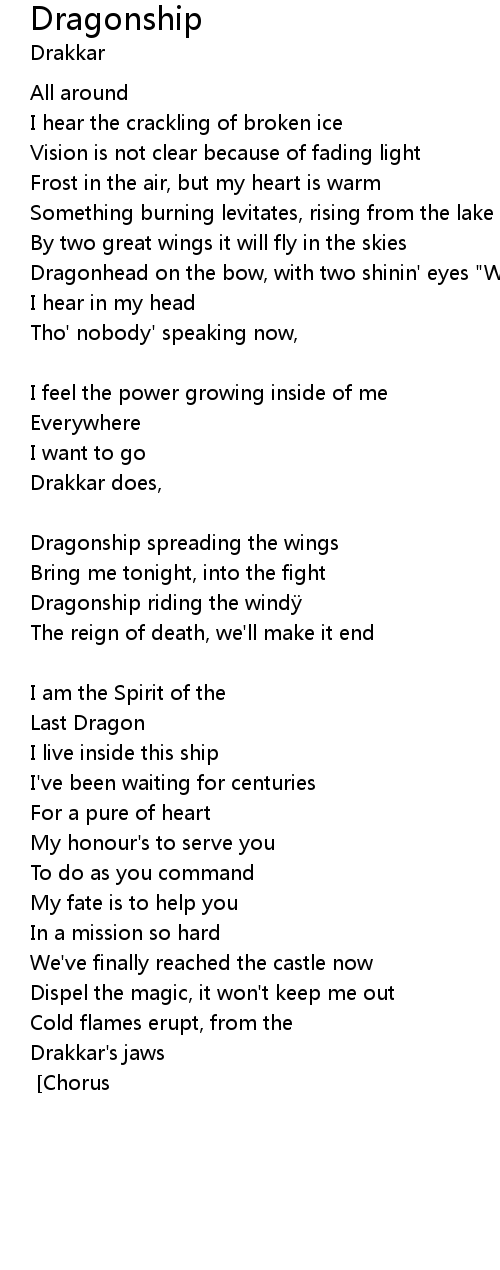 | Dragonhead on the bow, with two shinin' eyes " Welcome on board", | |