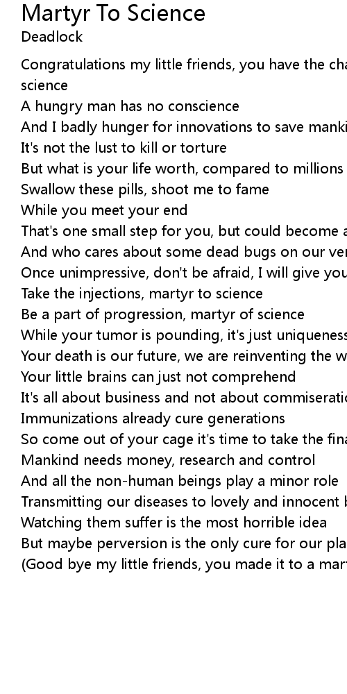 | Be a part of progression, martyr of science | |