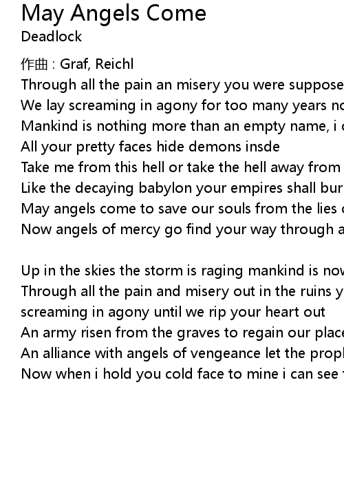 | Now angels of mercy go find your way through all the decay come and take us away | |