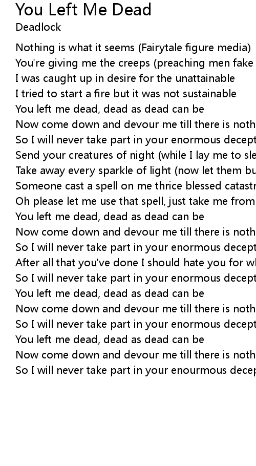 You left me dead, dead as dead can be |