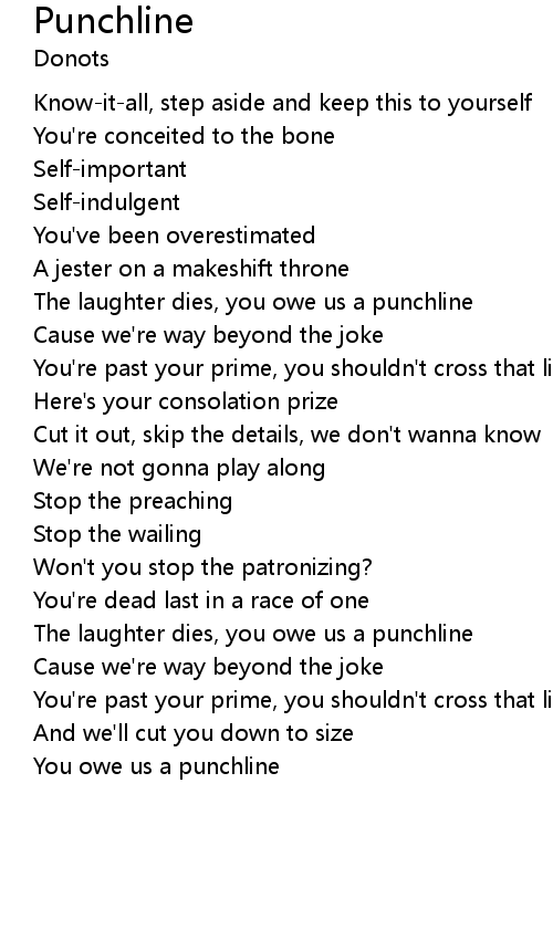 The laughter dies, you owe us a punchline |