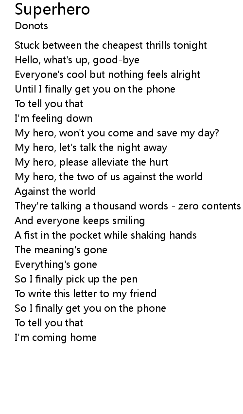 My hero, won't you come and save my day? |