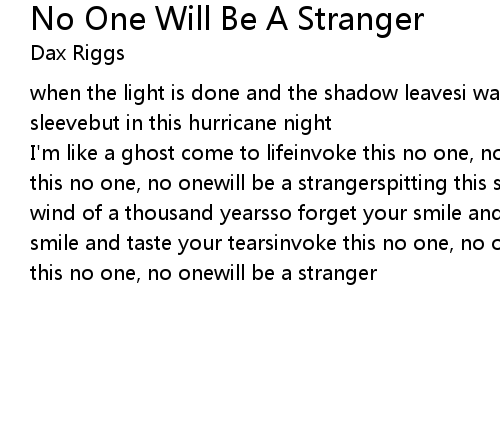 | Song | No One Will Be A Stranger |