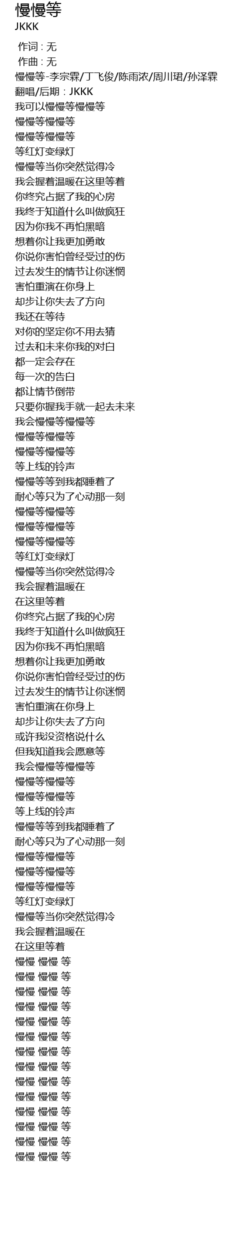 | [00:00.179] | 慢慢等-李宗霖/丁飞俊/陈雨浓/周川珺/孙泽霖 |