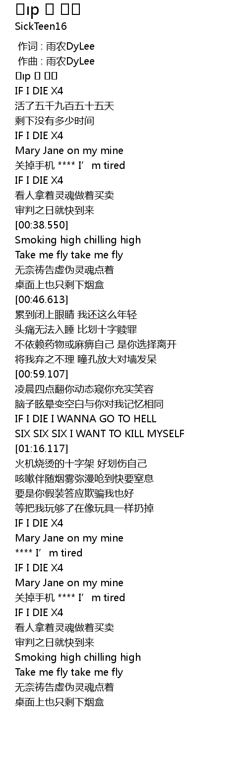 | [01:08.861] | IF I DIE I WANNA GO TO HELL |