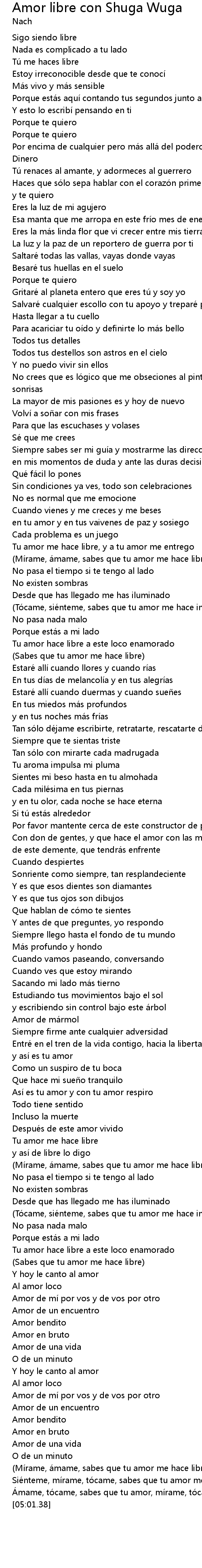 | [01:56.07] | Sabes que tu amor me hace libre |