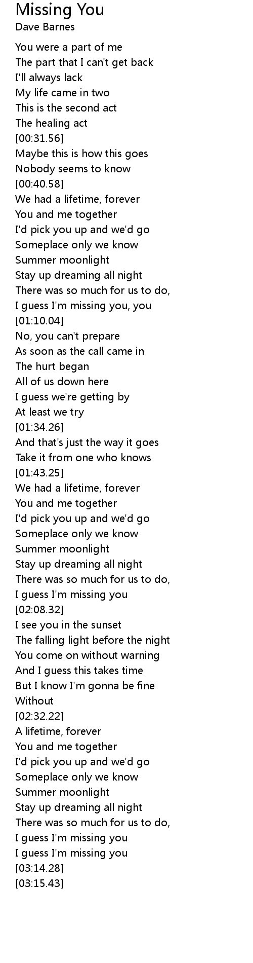 I guess I'm missing you, you |