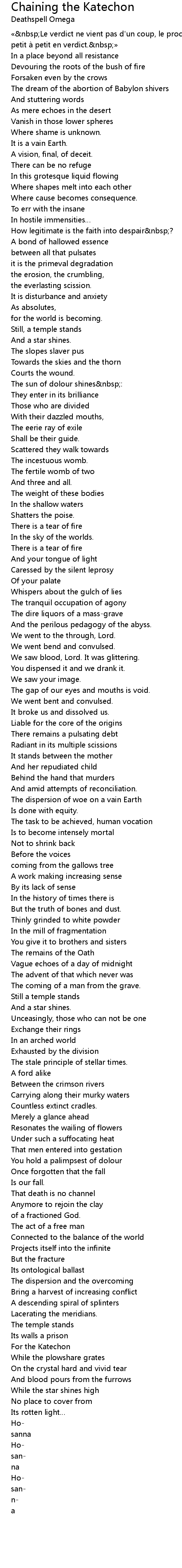 | For the Katechon | |