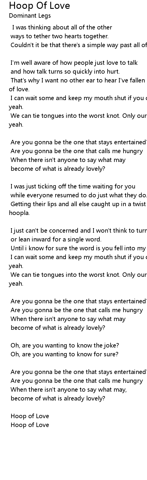 That's why I want no other ear to hear I've fallen into your Hoop of Love, Hoop of love. |
