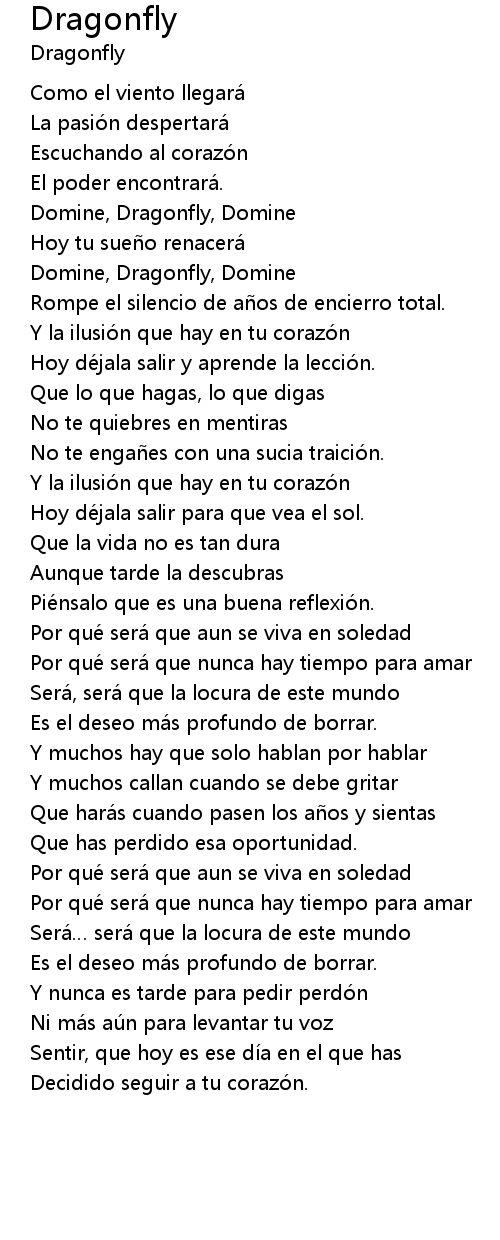 | Domine, Dragonfly, Domine | |