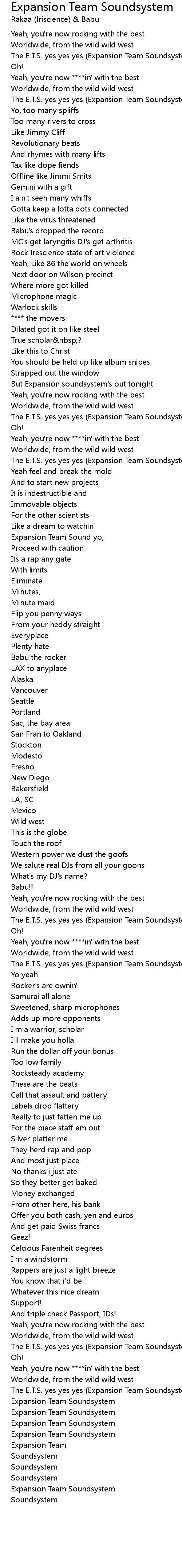 Expansion Team Sound yo, |