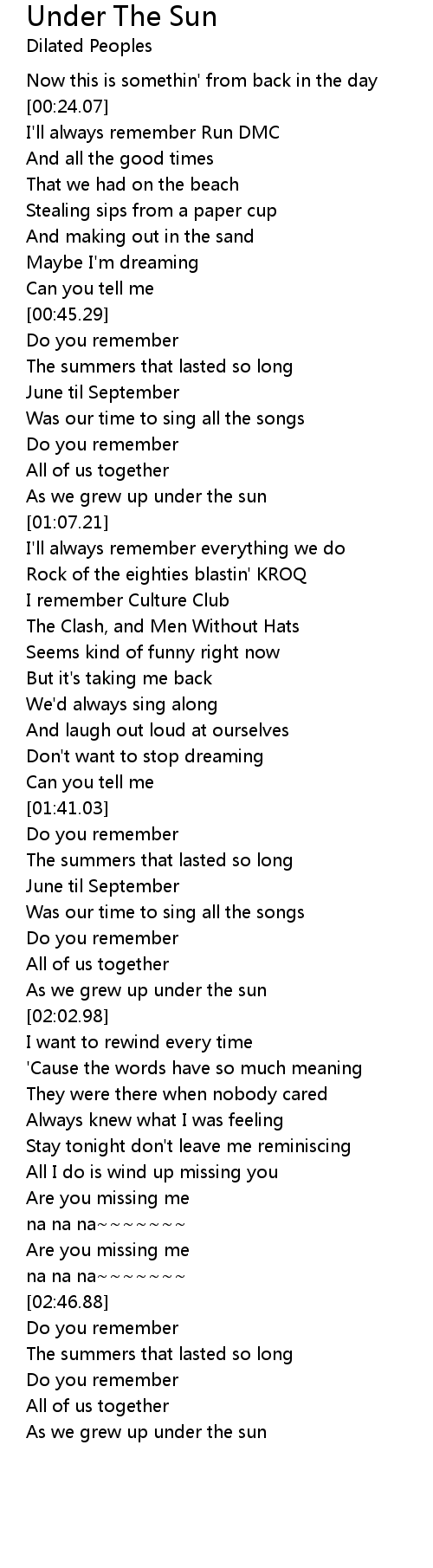 As we grew up under the sun |