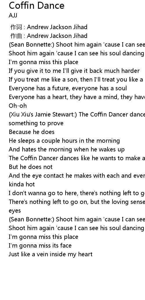 | [01:18.79] | (Xiu Xiu's Jamie Stewart:) The Coffin Dancer dances like he has something to prove |