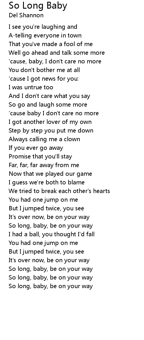 So long, baby, be on your way |