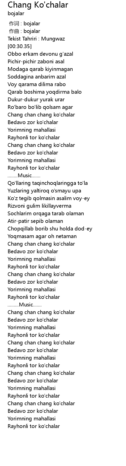 | [01:37.14] | Chang chan chang ko'chalar |
