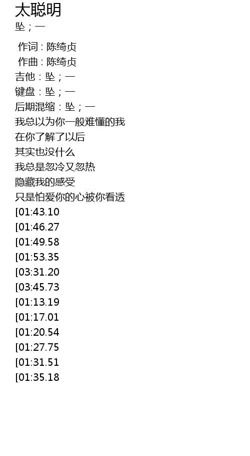 | [03:17.57][01:43.10][00:40.84] | 猜的没错想得太多 |
