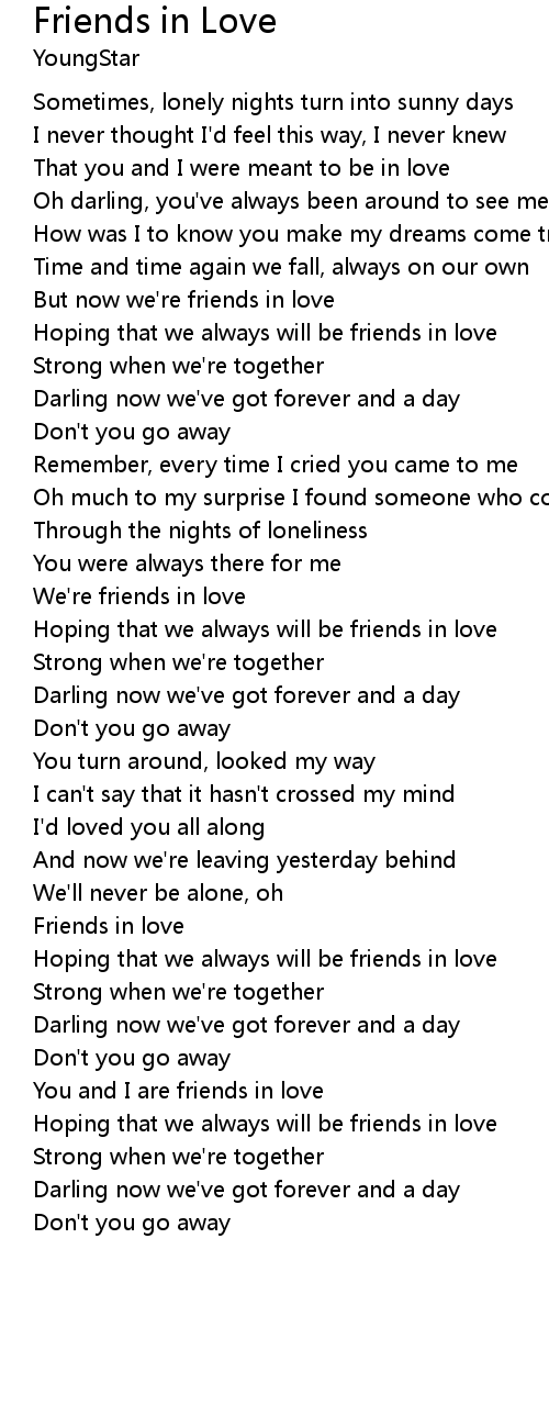 Hoping that we always will be friends in love |