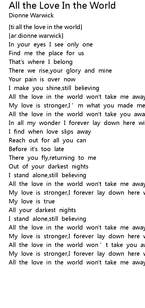 | [00:48.437] | All the love in the world won' t take me away from you |