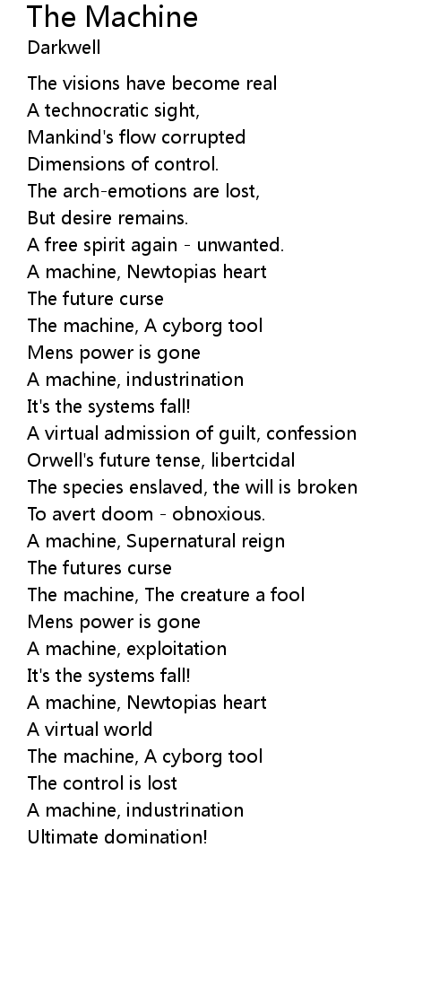 | The machine, The creature a fool | |