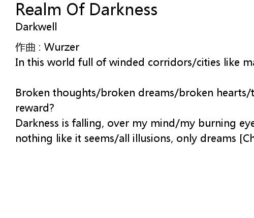 | Broken thoughts broken dreams broken hearts this realm of darkness, is this my reward? | |