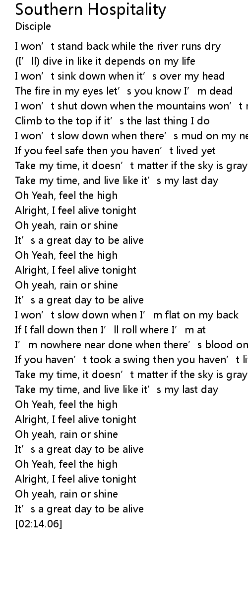 | [02:04.16] | Alright, I feel alive tonight |
