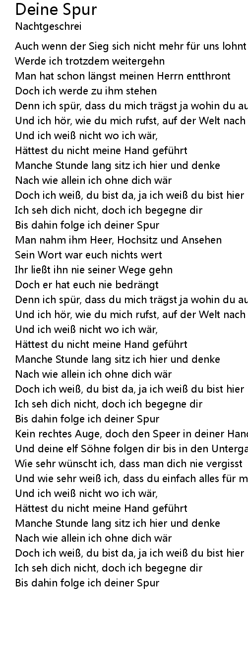 | Denn ich spü r, dass du mich tr gst ja wohin du auch gehst | |