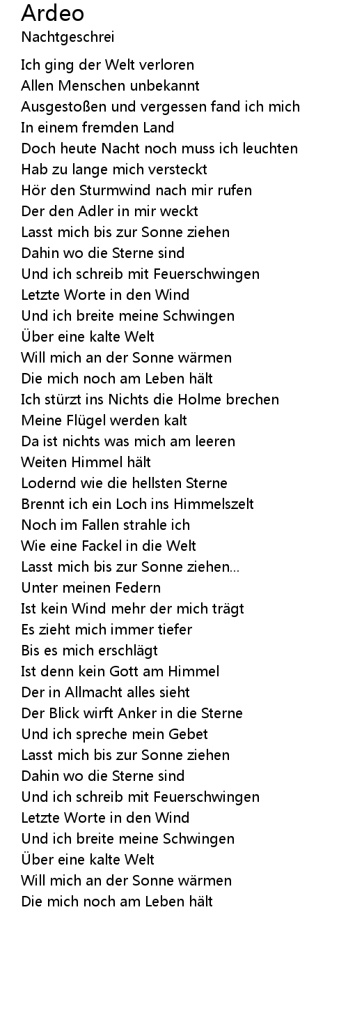 | Hör den Sturmwind nach mir rufen | |