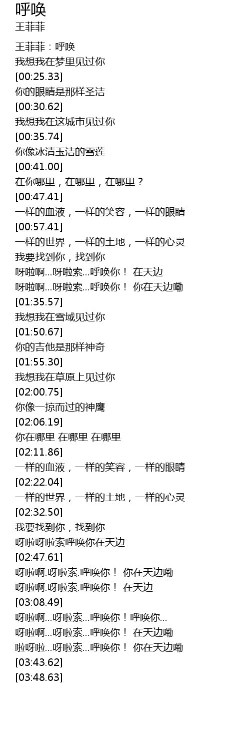 | [00:00.99] | 王菲菲:呼唤 |