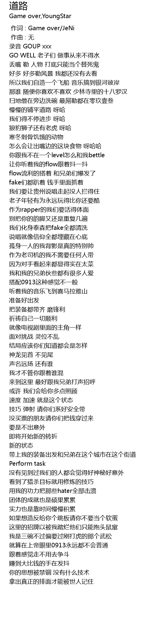 | [00:00.000] | zuo ci : Game over JeNi |