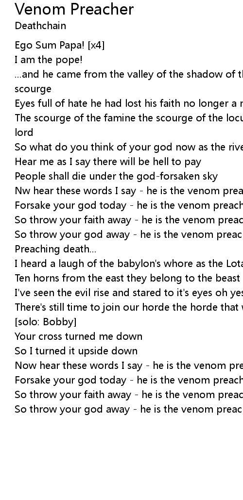 Forsake your god today - he is the venom preacher |