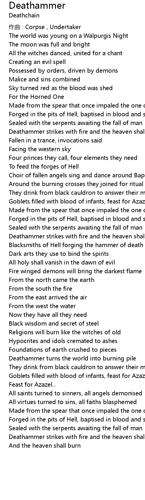 | Deathammer strikes with fire and the heaven shall burn | |