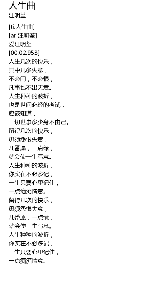 | [00:27.811] | ren sheng ji ci de kuai le, |