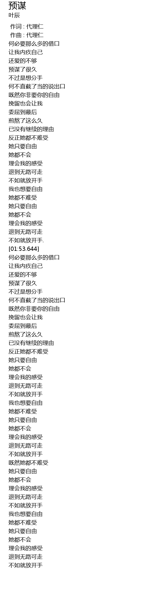 | [02:05.894] | 不过是想分手 |