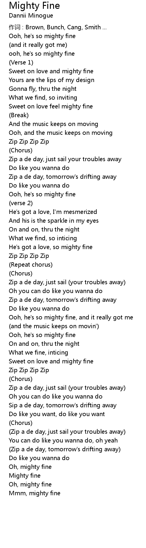 | Song | Mighty Fine |