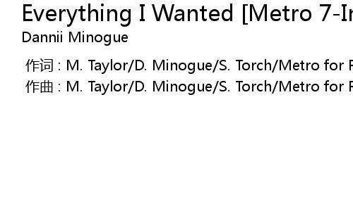 | [00:00.000] | 作曲 : M. Taylor/D. Minogue/S. Torch/Metro for Rive Droite Music |