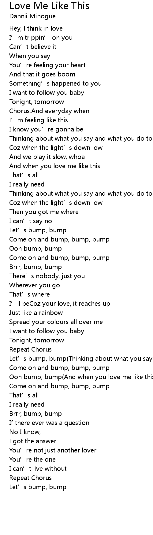 | Ooh bump, bump And when you love me like this | |