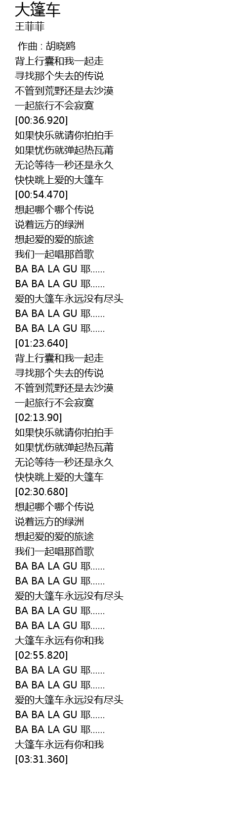 | [02:46.690] | ài de dà péng chē yǒng yuǎn méi yǒu jìn tóu |