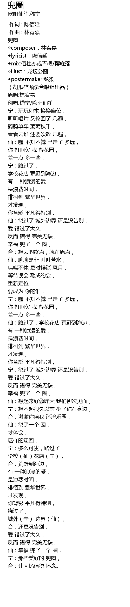 | [03:43.515] | 宁:那些美好的 兜圈, |