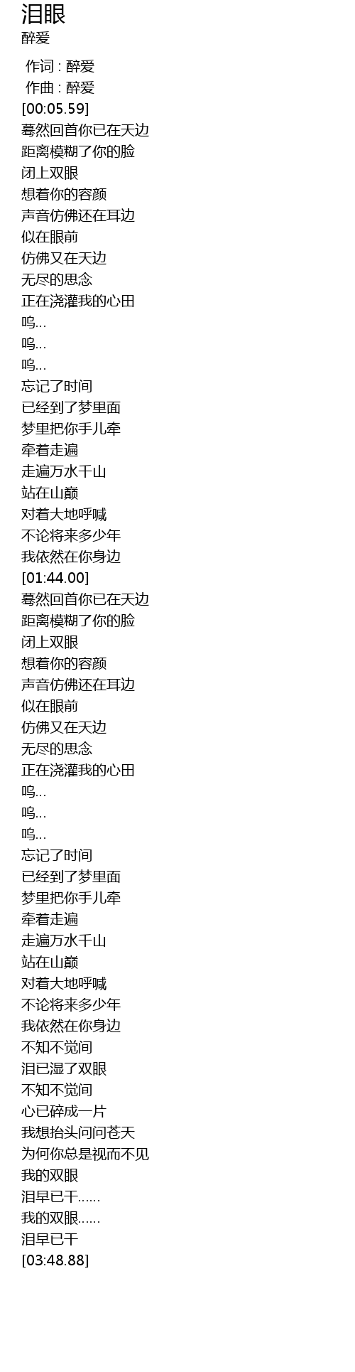 | [03:24.61] | lèi yǐ shī le shuāng yǎn |