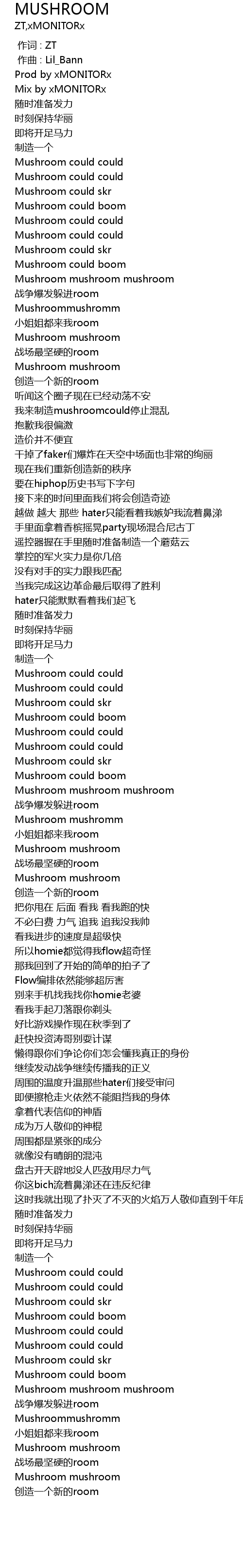 | [00:44.68] | 我来制造mushroomcould停止混乱 |
