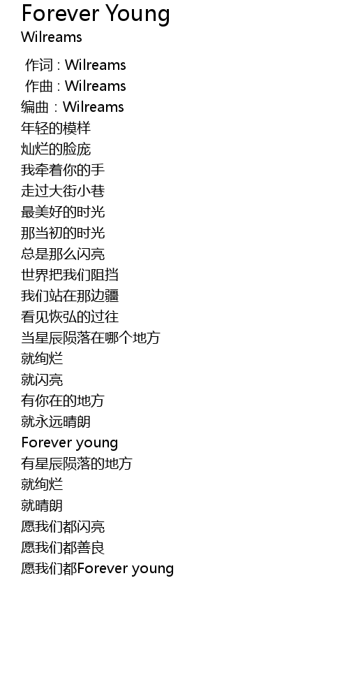 | [02:17.696] | yuàn wǒ men dōu Forever young |